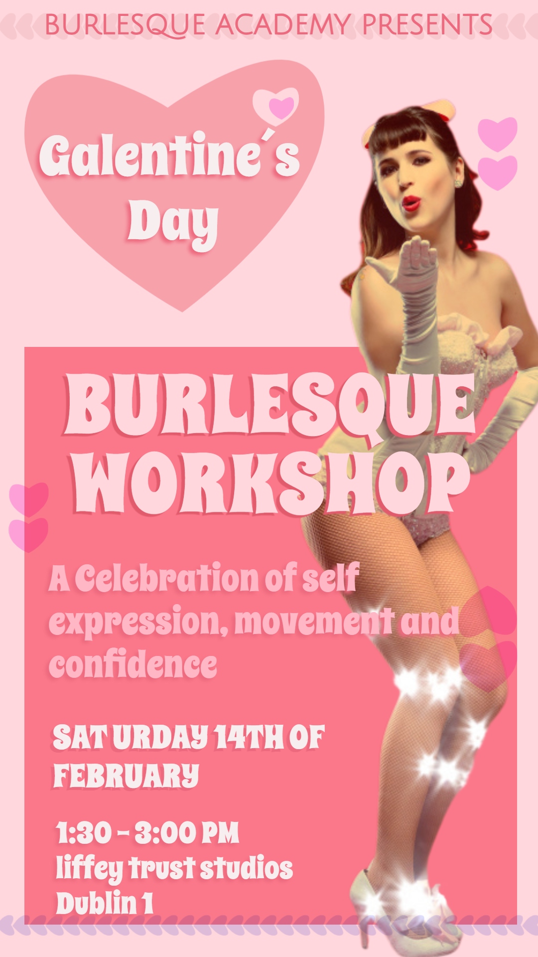 Guided by the Irish Burlesque Academy, this workshop invites you to connect with your body and your presence through signature burlesque techniques. You’ll explore movements designed to help you feel confident, playful, and fully embodied, culminating in a fun routine that leaves you glowing and empowered.
